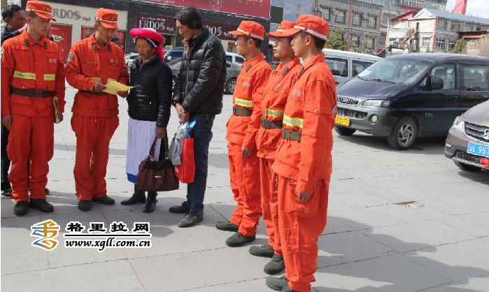 工作人员在香格里拉县城人口集中的长征大道、香巴拉大道、坛城广场、向阳农贸市场等场所广播《云南省人民政府2015年森林防火命令》、《云南省森林防火条例》,悬挂宣传横幅、发放宣传资料,向过往群众讲解森林防火知识,倡导文明祭祀新风,自觉严格控制清明节野外用火,有效保护森林资源安全。