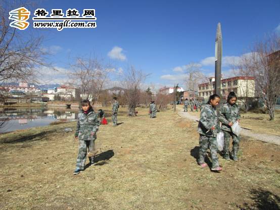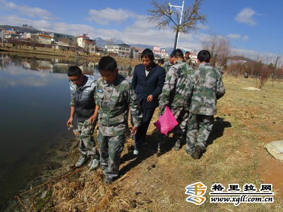 香格里拉市二中师生清扫龙潭公园垃圾