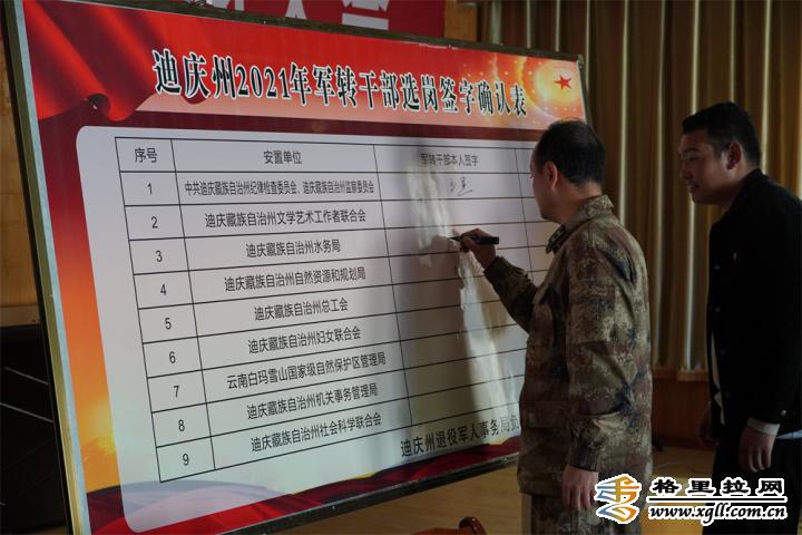 今年安置工作启动以来,迪庆州退役军人事务局认真贯彻落实全国、全省军转安置工作会议精神,采取考试、考核相结合的办法,按照总分,由高到低自主选择工作岗位。选岗过程规范有序、结果透明公开,每个环节都由军转干部本人核对并签字确认。