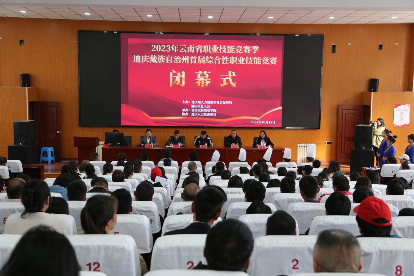 10月15日,“2023年云南省职业技能竞赛季 迪庆藏族自治州首届综合性职业技能竞赛”闭幕式在香格里拉职业学院报告厅举行。迪庆州人力资源和社会保障局党组成员、公共就业和人才服务中心主任和国栋,迪庆州总工会党组成员、副主席杨孟麟,迪庆州民族中等专业学校党委副书记、校长赵振宇等部门和单位有关领导,组委会全体工作人员和全体参赛选手、裁判员参加了活动。