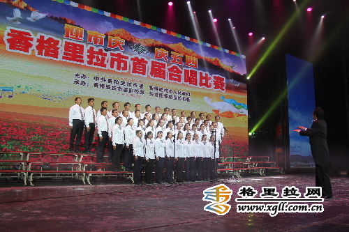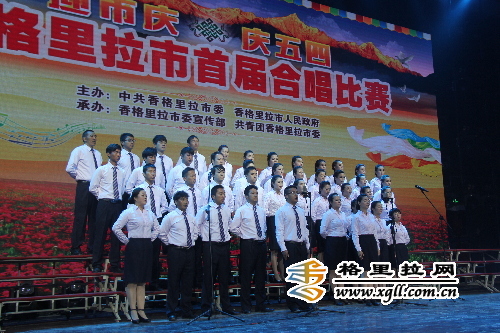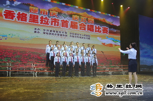 香格里拉网快讯 5月5日,由中共香格里拉市委、香格里拉市人民政府主办,香格里拉市委宣传部、共青团香格里拉市委承办的“迎市庆 庆五四”香格里拉市首届合唱比赛在香格里拉之声开展,本次比赛共有12支队伍参加。《五十六个民族五十六朵花》、《歌唱祖国》、《没有共产党就没有新中国》、《香格里拉》、《唱支山歌给党听》等等一首首经典曲目在各系统的全新演绎下,慷慨激昂、催人奋进,不时赢得在场观众的一阵阵掌声。