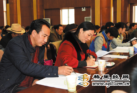 2月25日上午,中国人民政治协商会议迪庆藏族自治州第十一届委员会第五次会议在州委报告厅隆重开幕。图为委员在认真聆听政协工作报告。