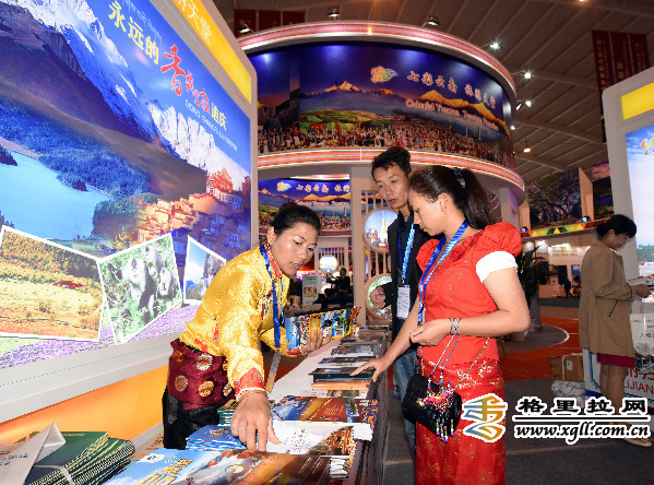 参观的客商正在旅游产业馆迪庆展区前咨询。