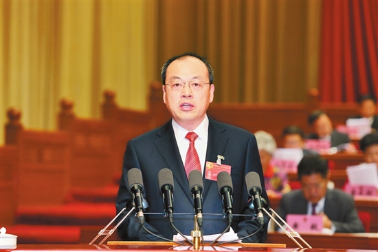 代省长阮成发代表省人民政府向大会作政府工作报告。