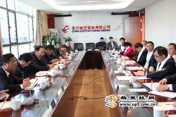 11月13日下午,州委副书记、州长率队到昆明与东航云南公司总经理张悦、公司党委书记徐海华等领导就进一步深化企地合作、共同拓展迪庆航空市场进行座谈交流。州长希望东航云南公司能给予增加今冬明春昆明—迪庆的晚班航班以充分满足游客及群众的出行需要,并在2018年夏秋航季航班编排上以及今后迪庆新开航线、完善航线网络方面给予我州大力支持。