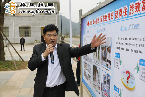 在长顺县潮井安置点,长顺县领导介绍相关经验。