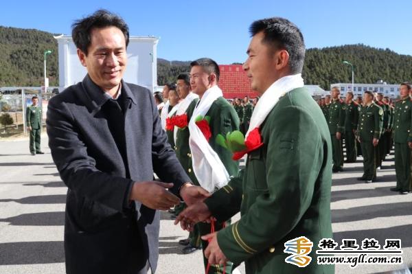 欢送仪式上,州委常委、州委秘书长杨梓江代表州级四套班子寄语退伍军人。他说,回想几年前,你们响应祖国的号召,怀着报效祖国的满腔热情,带着对绿色军营的美好向往,从天南地北汇集在庄严的八一军旗下。你们把人生最宝贵的时光留给了部队,将最美好的回忆留在了绿地军营,用实际行动践行了“做党和人民忠诚卫士”的庄严承诺,履行了保卫国家安全、维护社会稳定、保障人民安居乐业的神圣使命,迪庆州跨越发展的光辉历程中留下了你们的足迹。祝愿你们在新的岗位上再立新功、再创辉煌,并欢迎你们常回第二故乡迪庆看看。部队领导对退伍军人为团队建设作出的贡献表示感谢,勉励他们在新的征程上始终保持人民子弟兵的本色,不忘初心、牢记使命,永远奋斗,做到若有战,召必回。