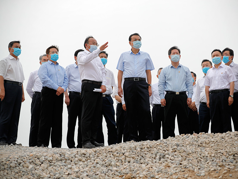 李克强8月18日下午来到河南新乡卫辉市,考察卫河决口堤段修复进展情况。