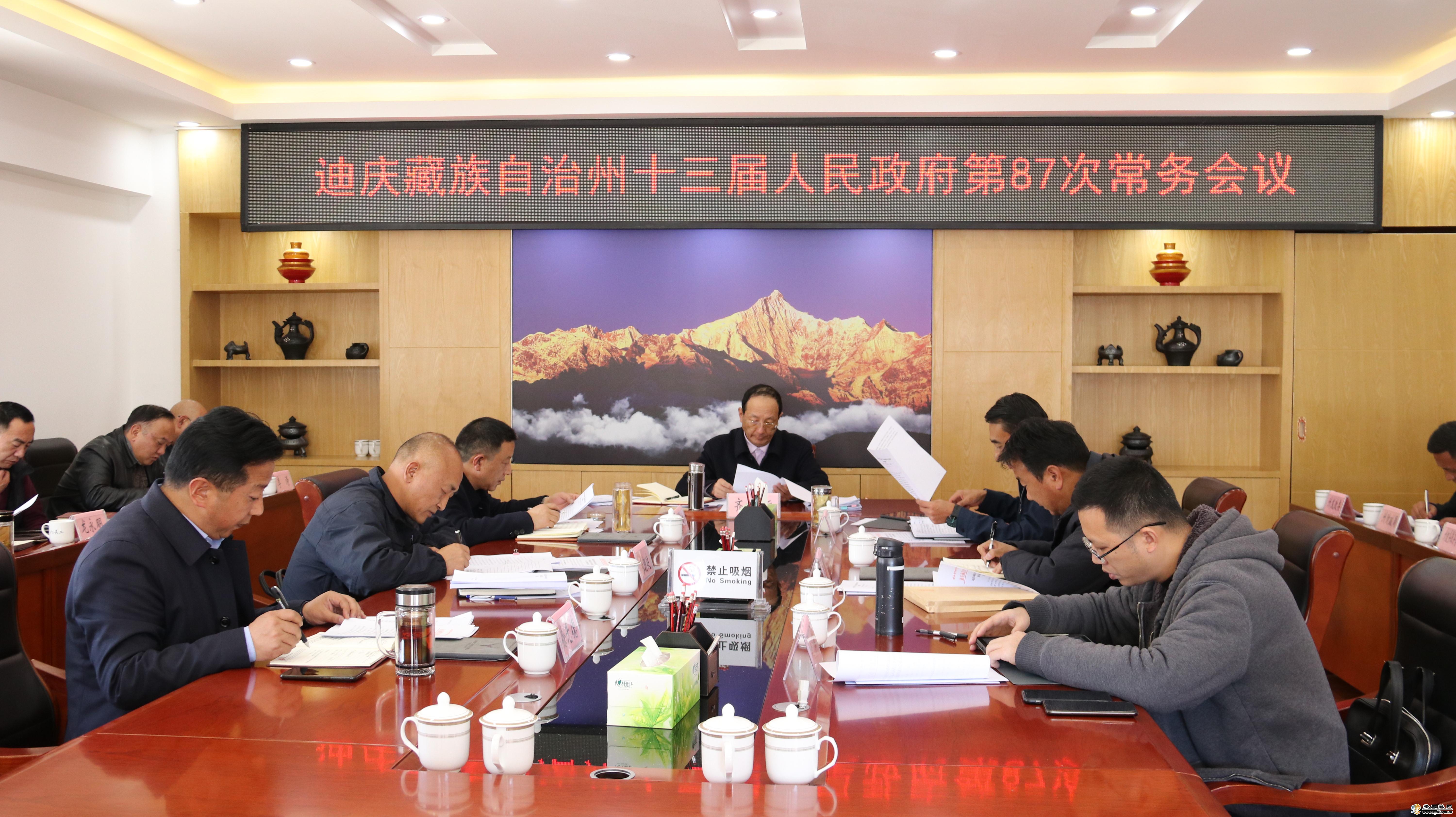 香格里拉网讯 (记者 央金拉姆) 11月2日,州长主持召开州十三届人民政府第87次常务会,传达学习中央、省的有关重要会议和文件精神,审议有关事项并研究贯彻意见。