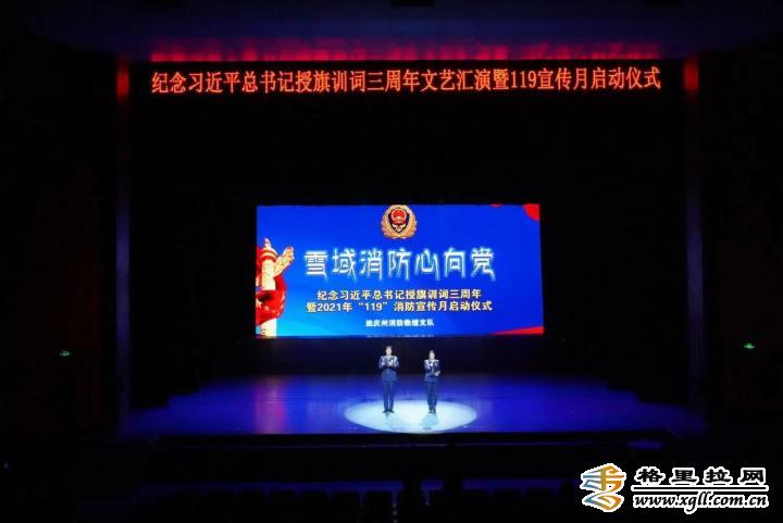 11月8日晚,纪念习近平总书记授旗帜训词三周年文艺汇演暨119宣传月启动仪式在香格里拉大剧院举行。州委副书记彭山,州委常委、州委政法委书记李燕兰,州委常委、州委宣传部部长孔维华,州政府副州长、州公安局局长张朝廷出席启动仪式并观看演出。