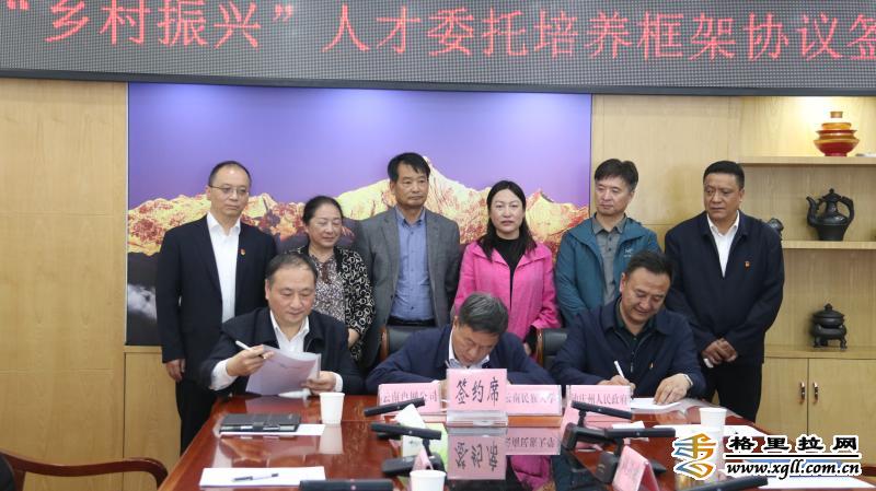张卫东、张桥贵、江北共同签订了《迪庆州“乡村振兴”人才委托培养框架协议》。