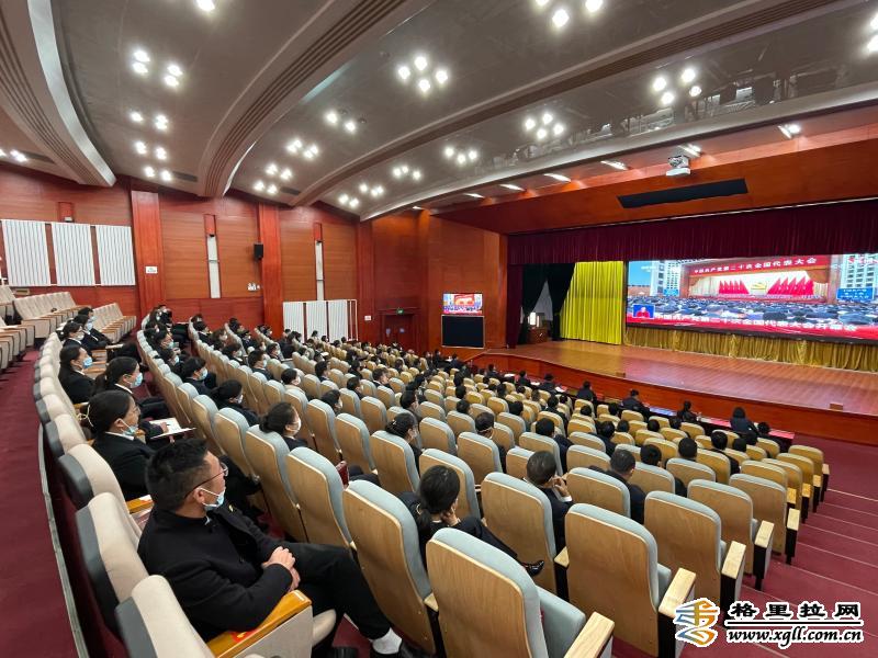 德钦县党员干部纷纷满怀激情地在行政中心报告厅收听收看党的二十大开幕会实况直播。