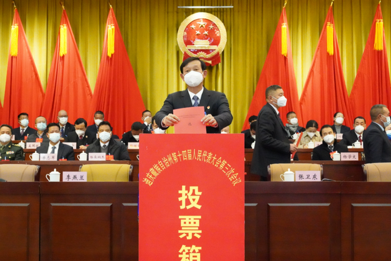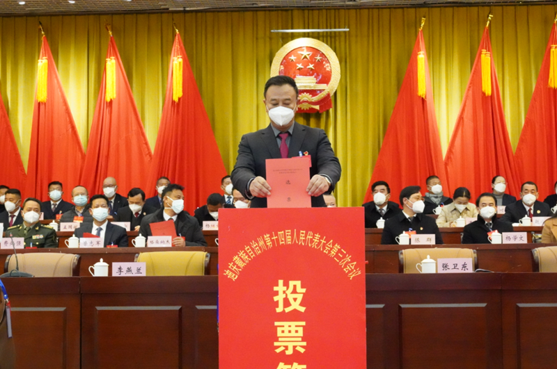 1月7日上午,迪庆藏族自治州第十四届人民代表大会第三次会议圆满完成各项议程,在香格里拉市胜利闭幕。