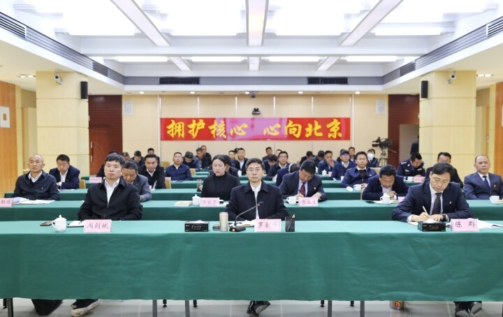 州委书记罗朝峰在迪庆第一分会场参会。