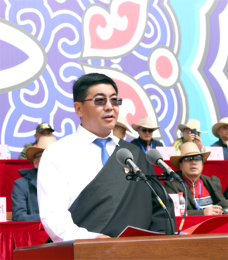 上午10时,活动在万众期待中正式拉开序幕,伴随着礼炮和阵阵马蹄声运动员有序入场。随后,庄严肃穆的旋律响起,全场起立举行升国旗仪式,共唱中华人民共和国国歌。 州委书记罗朝峰宣布迪庆·香格里拉2023年端午赛马节开幕。 州委常委、香格里拉市委书记杨梓江致辞。他说,党的十八大以来,在党中央的亲切关怀下,在省委、省政府和州委、州政府的坚强领导下,香格里拉市坚持推动高质量发展,如期实现脱贫摘帽,进入“高速时代”“5G时代”,即将在全国涉藏州县中率先进入“动车时代”,各项事业取得长足进步,各族群众的获得感、幸福感、安全感明显增强,世界的“香格里拉”正逐步从蓝图走向现实。他表示,举办此次赛马节,是香格里拉市实施“润心工程”文化育人行动,充分挖掘节庆文化资源,唱响主旋律、弘扬正能量、提振精气神,以文化人、以文育人的重要举措。期望通过举办此次活动,有力促进各民族交往交流交融,有力促进“以文塑旅、以旅彰文”取得新成效,有力促进大滇西旅游环线、大香格里拉旅游圈建设取得新进展。 香格里拉市委副书记、市长巨燕冬主持开幕式。 开幕式上,“一足冲天”“马背倒立”“直立献花”“双鹰展翅”等精彩绝伦的马术表演赢得了观众欢呼喝彩。大型文艺演出“飞马拾银话端午”以《马背传颂》《马道归韵》《马踏欢歌》《马踏飞燕》《万马奔腾》五个篇章生动讲述了香格里拉“茶马古道”的历史文化和自古以来群众与马的不解之缘,同时,展现了祖国的发展给边疆少数民族地区带来的翻天覆地的变化和各族群众感党恩、听党话、跟党走,团结奋斗共同描绘新时代的壮美画卷,奏响新征程华美乐章的信心和决心。 “很激动也很幸运能跟香格里拉的群众一起共庆如此盛大的节日,香格里拉是很多人向往的心灵的归宿,今天我在这里真切感受到了香格里拉人民的热情淳朴、民族文化的多元、生态旅游资源的富集,相信在不久的将来它也一定能够成为世界各国游客心中的必游之地。”在现场观看开幕式的北京游客李奇说道。 我州领导苗有发、江楚、陈群、杨学文、费炳强、杨树奇、李涛等及省级有关企业、高校,毗邻州、市、县、区领导等出席开幕式。