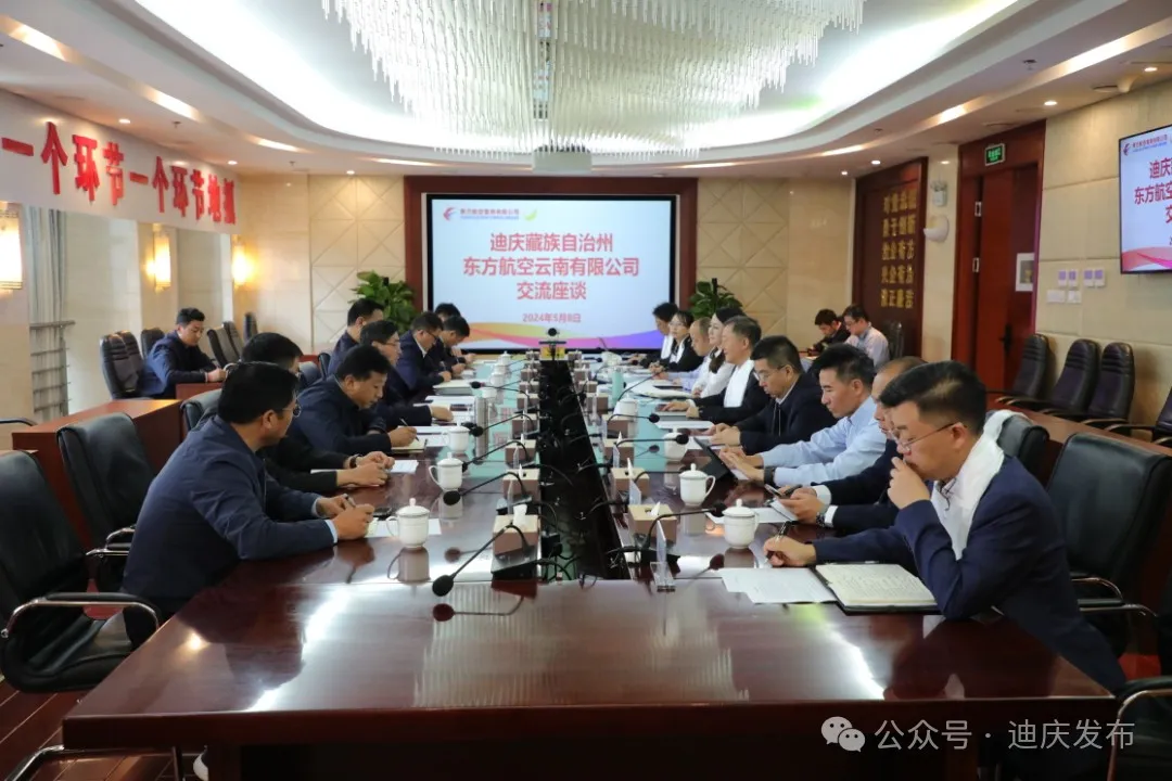 5月8日上午,州委书记罗朝峰,州委副书记、州长张卫东率队到东方航空云南有限公司就拓展航空市场、乡村振兴定点帮扶等事宜举行座谈交流。