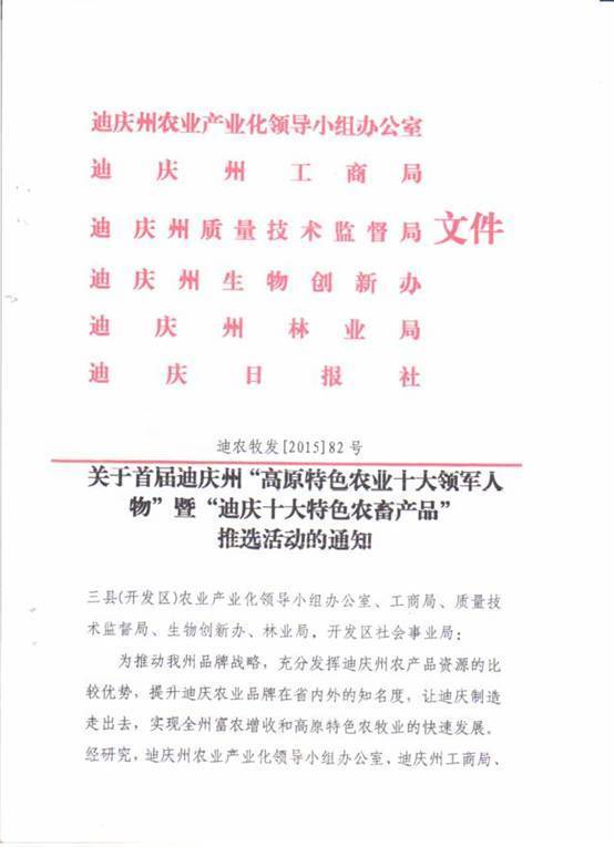 迪庆十大特色农畜产品”推选申报表(点击下载)