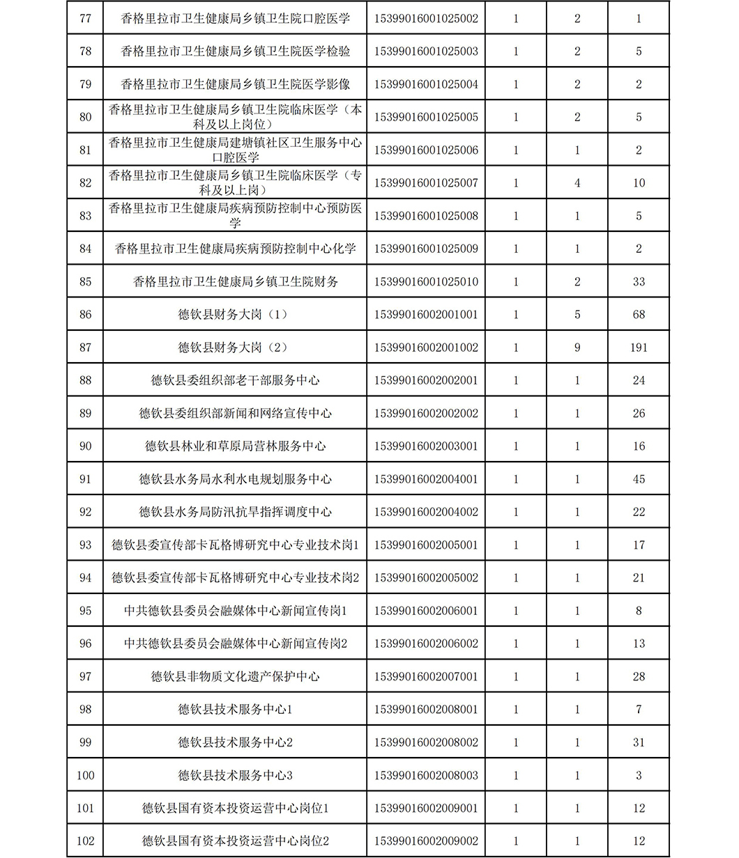 2023年迪庆州事业单位公开招聘工作人员岗位报名最终情况(截止4月4日00:01)