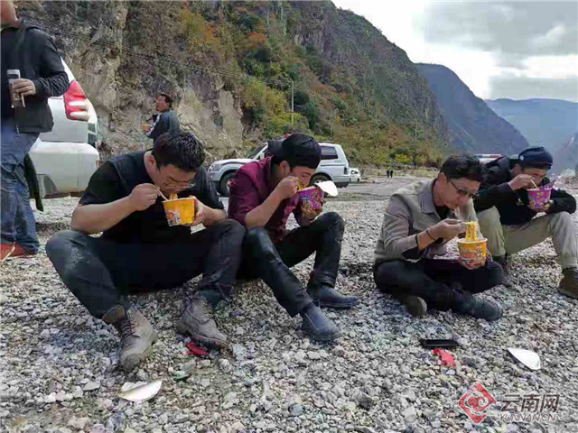 现场工作人员只能抽空吃点方便面