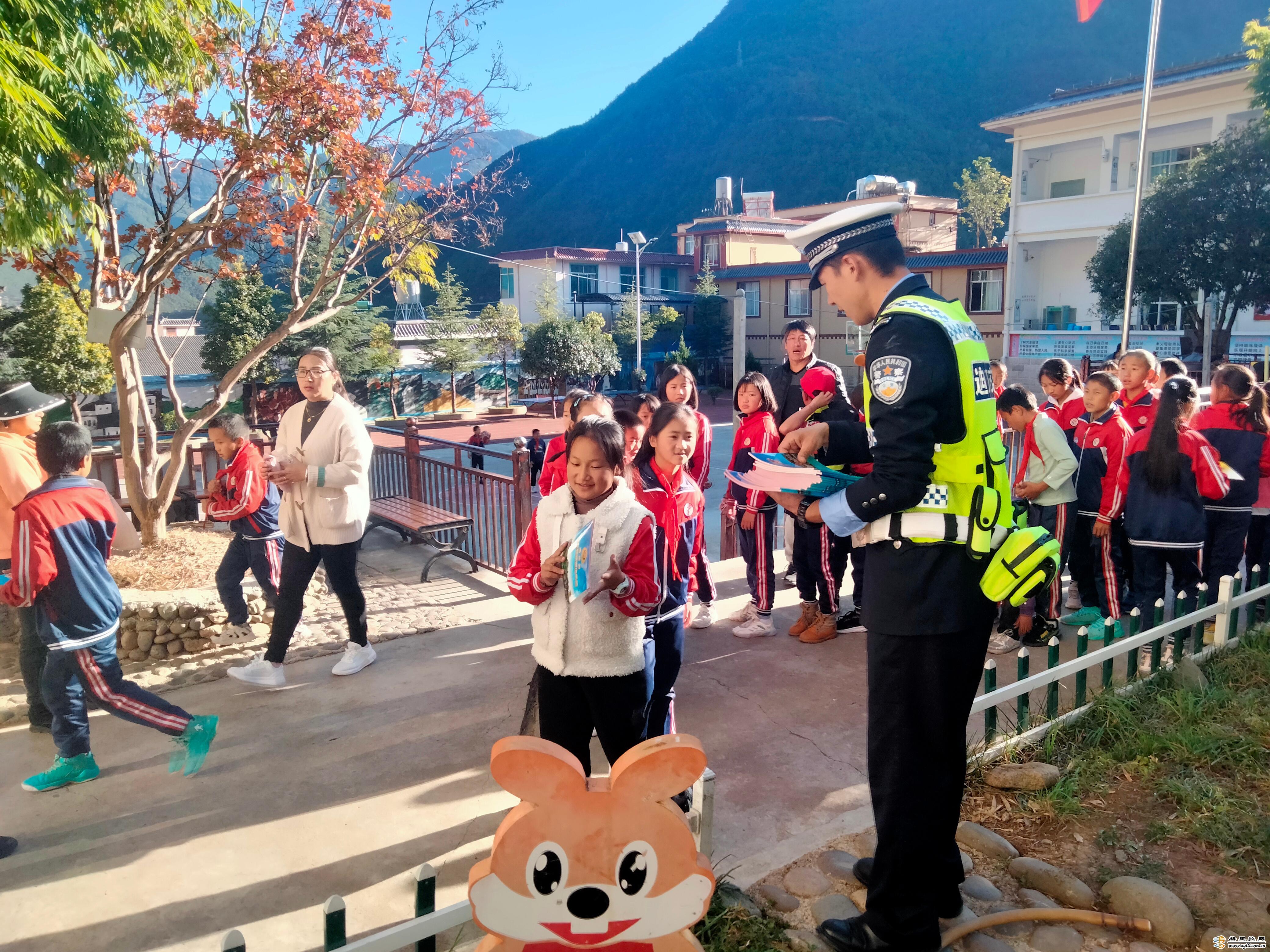 近日,为有效预防和减少各类道路交通事故发生,确保辖区交通安全形势持续平稳,维西县公安局塔城派出所紧紧围绕当前季节特点,通过细化应急预案、推进隐患整改、突出路面整治、落实路段承包责任制、加大交通安全宣传力度等举措,全面掀起冬季交通整治行动新高潮。图为塔城派出所民警到辖区学校发放交通安全宣传资料,引导学生注意交通安全。(杨杰 李国忠 摄)