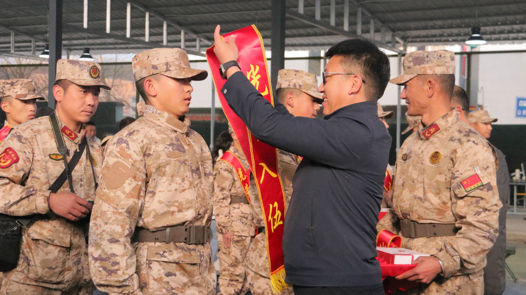 “参军入伍是我从小的梦想,今年我毅然报名应征,经过体检政考、役前教育层层选拔,光荣地被批准入伍。此刻,能够胸戴红花和战友们共同开启军旅生涯,我热血沸腾,心情无比激动和自豪。进入军营我定将热血挥洒在实现强军梦的伟大实践中,在军营这个大熔炉里淬炼成钢,书写绚烂、无悔的青春篇章。”入伍新兵李鹏院激动地说道。