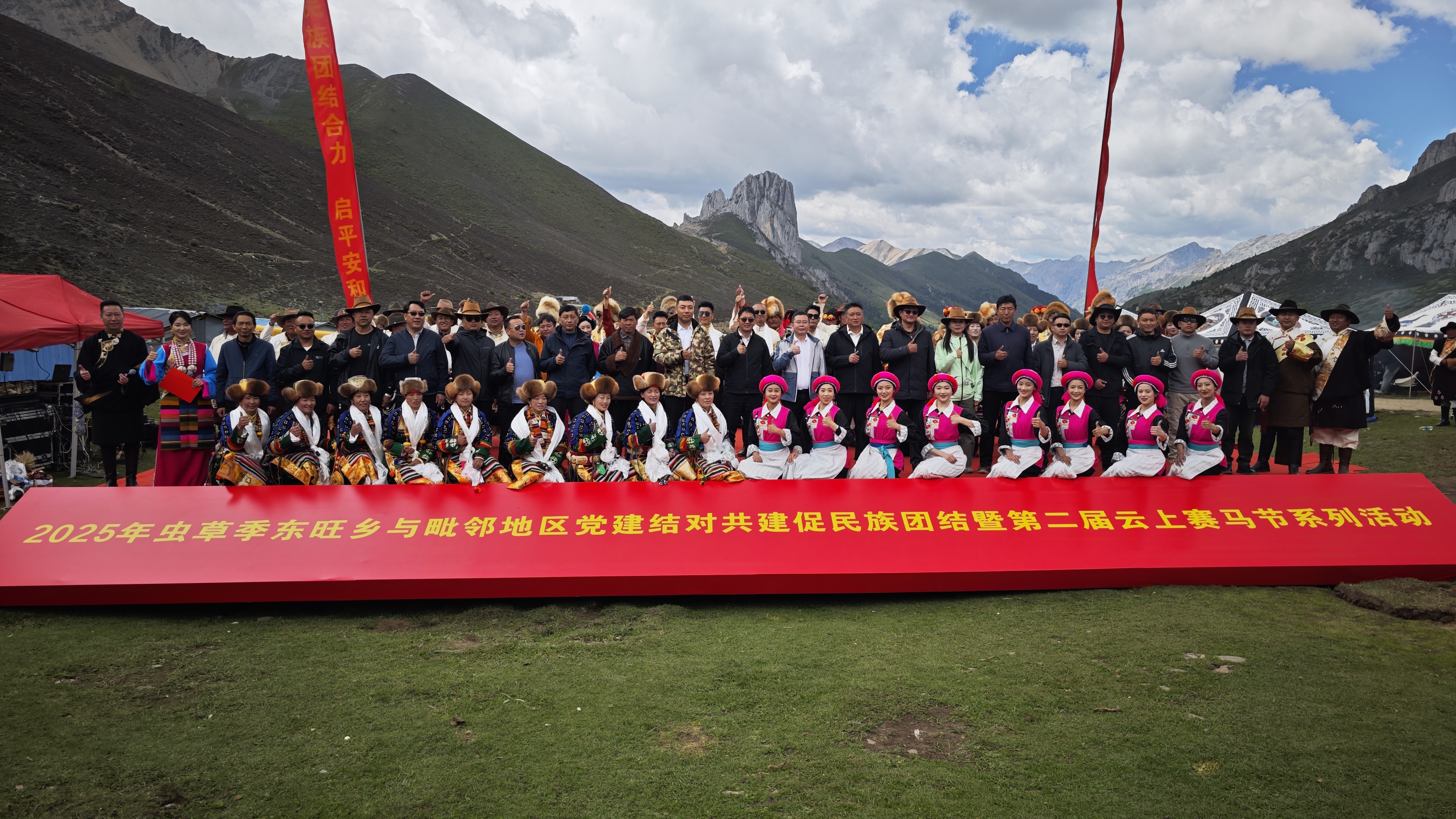 6月8日,以“聚民族团结合力 启平安和谐新章”为主题的2025年虫草季东旺乡与毗邻地区党建结对共建促民族团结暨第二届云上赛马节系列活动举行。