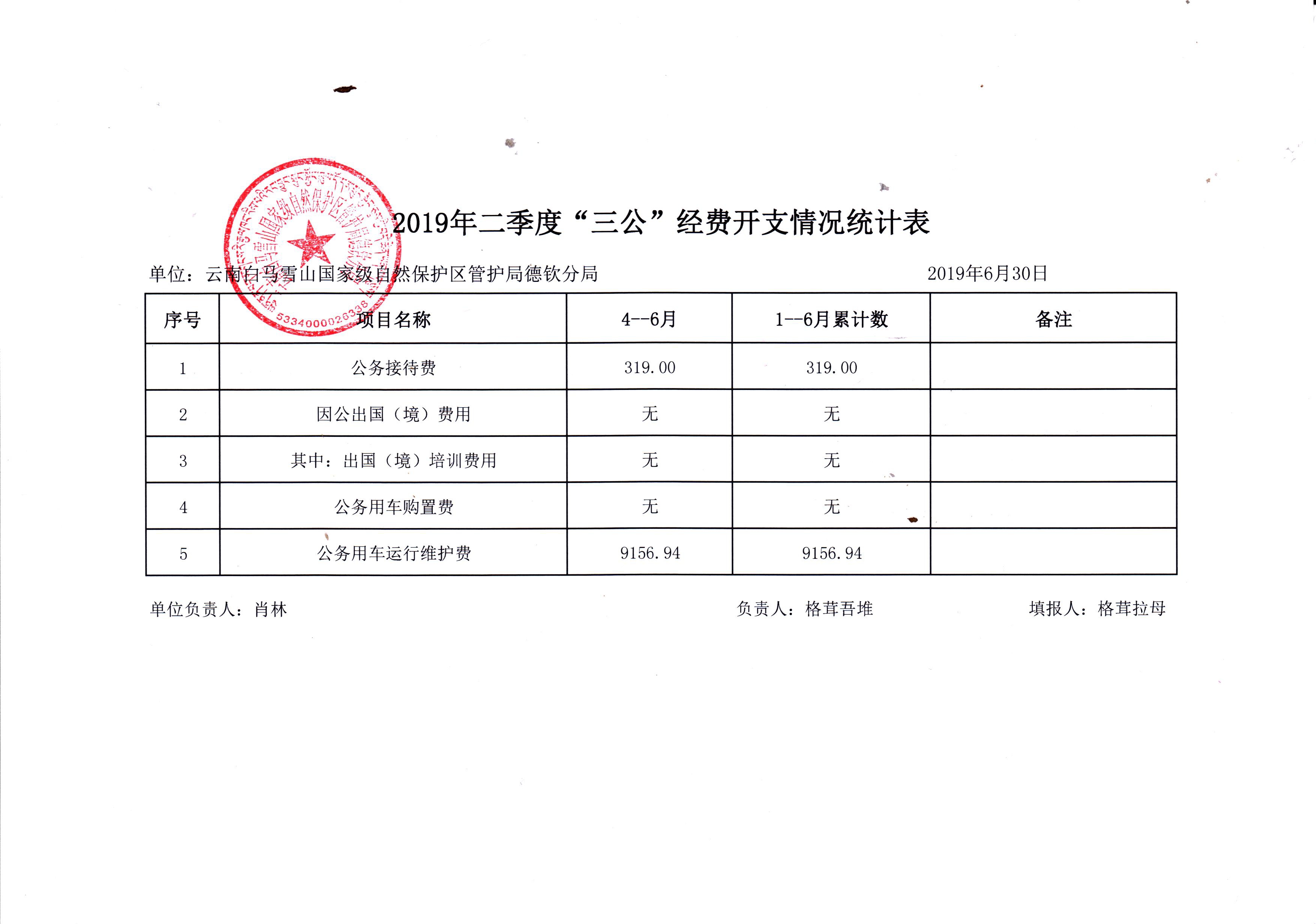 云南白马雪山国家级自然保护区管护局德钦分局第二季度“三公经费"公示