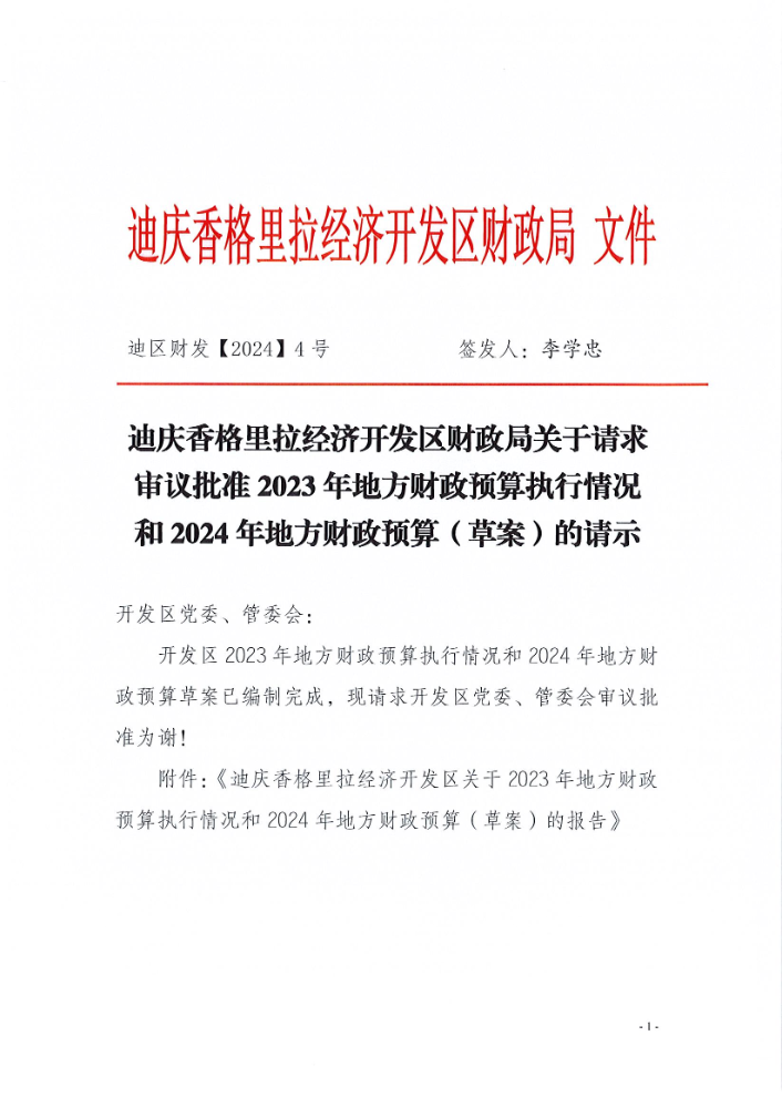 关于迪庆经济开发区2023年地方财政预算执行情况和2024年地方财政预算(草案)的报告