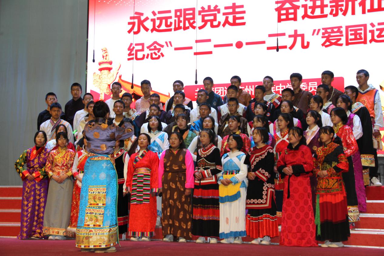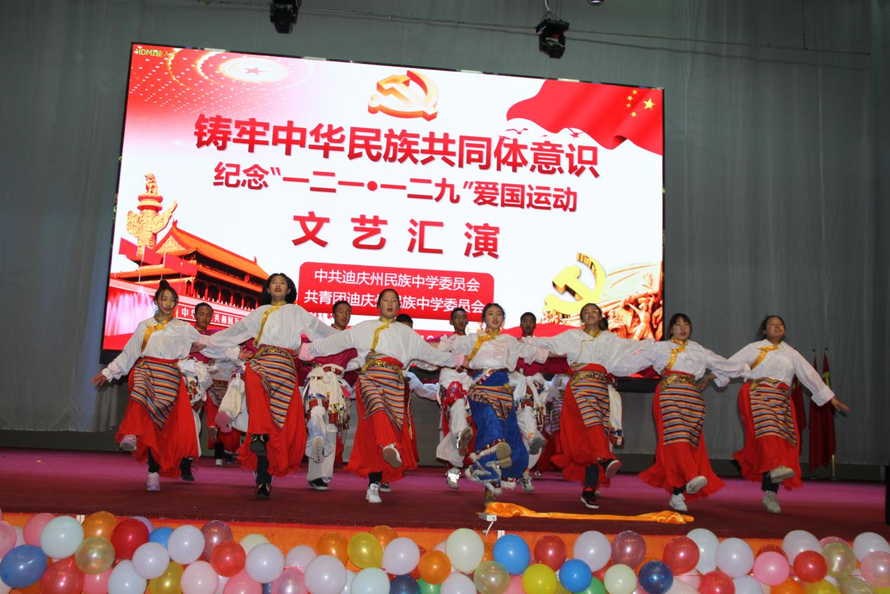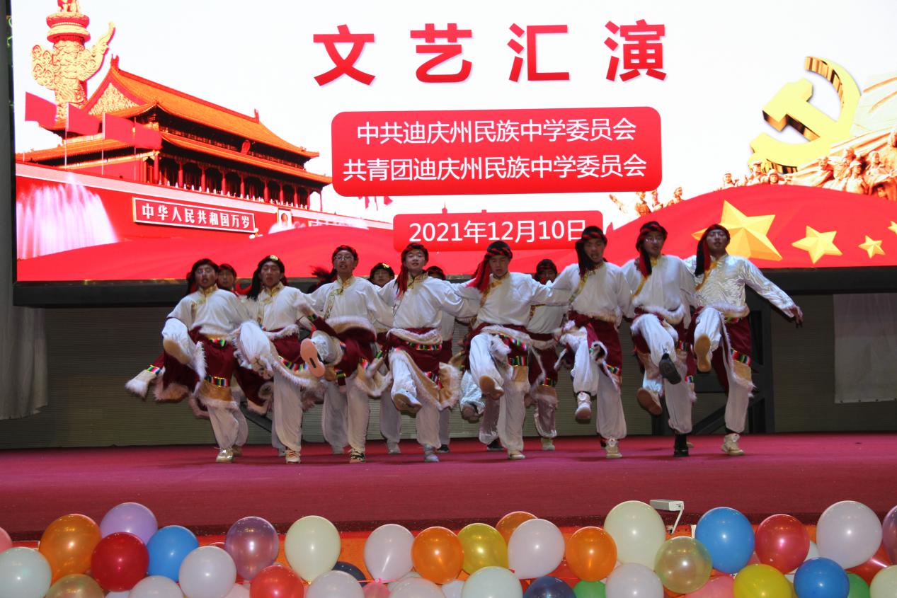 10日晚,高二年级组表演了精彩的文艺节目。235班带来的民族舞《军民一家亲》让我们一同回到人民解放军解放西藏时的革命岁月,一起感受那浓浓的军民鱼水情。神州大地繁花似锦,祖国长空长乐曲如潮,一百年见证了一个国家的繁荣昌盛,吾为中华天堑无涯,山河无恙,吾国万疆。高230班中国舞《万疆》以悠扬的歌声将古典意境与中国韵味表现得淋漓尽致......一曲曲动人的旋律,一首首熟悉的歌曲,唤起全校师生对那段峥嵘岁月的追忆,点燃了师生们浓浓的爱国热情,唱出了新时代中学生积极乐观、拼搏奋进的良好精神风貌,来自高一258班的曲目《大中国》和高二240班的民族舞《和谐迪庆,永念党恩》更是点燃了现场气氛将晚会推向高潮。