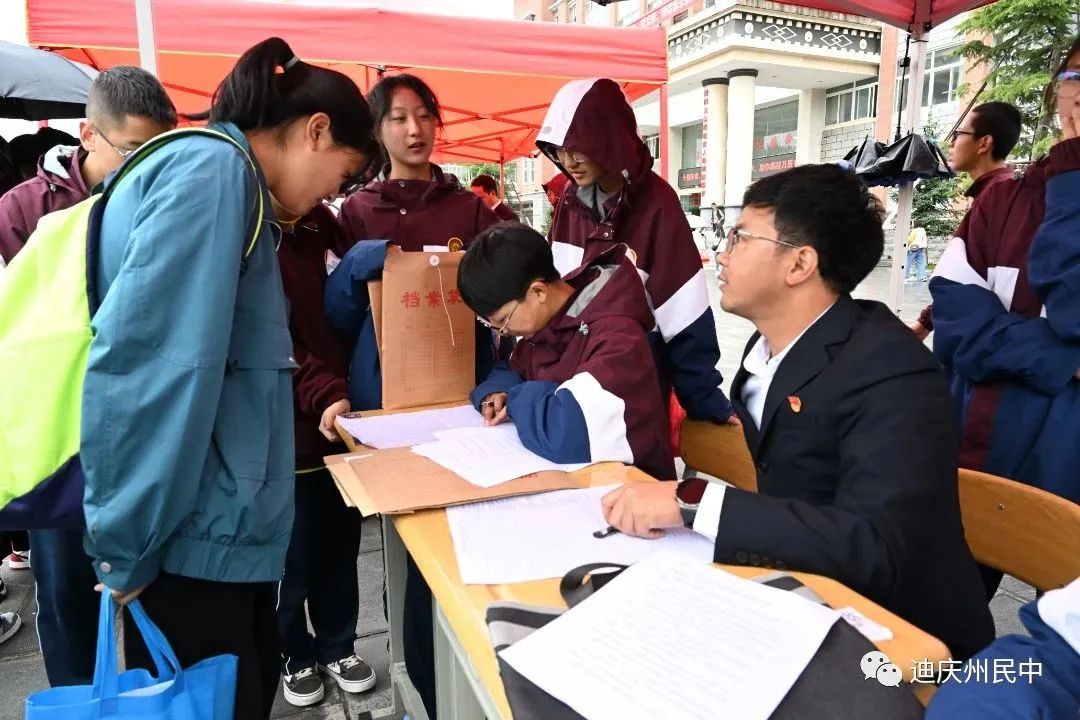 “同学,请问你是哪个班的?需要帮助吗?”“把行李交给我吧,我带你去找报到点......”这是迪庆州民族中学2023级新生报到现场,一声声温暖的问候,一份份贴心的关怀充满了整个校园。