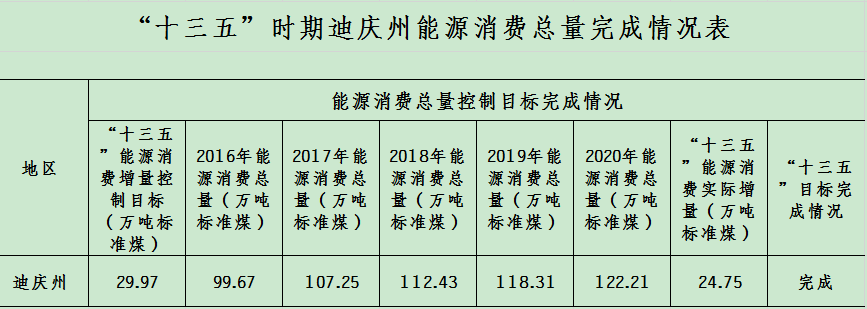 “十三五”时期,全州单位GDP能耗强度累计降低19.46%,超额完成云南省下达的“十三五”累计降低7%的约束性目标任务(详见下表)。