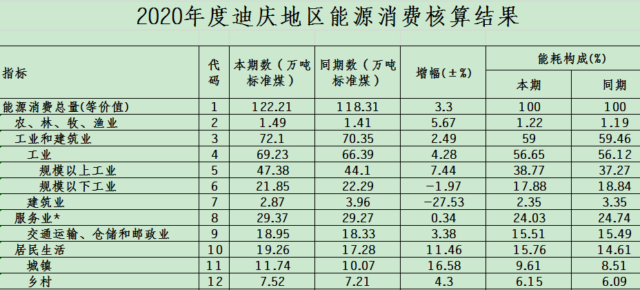 二、2020年迪庆地区能源消费情况
