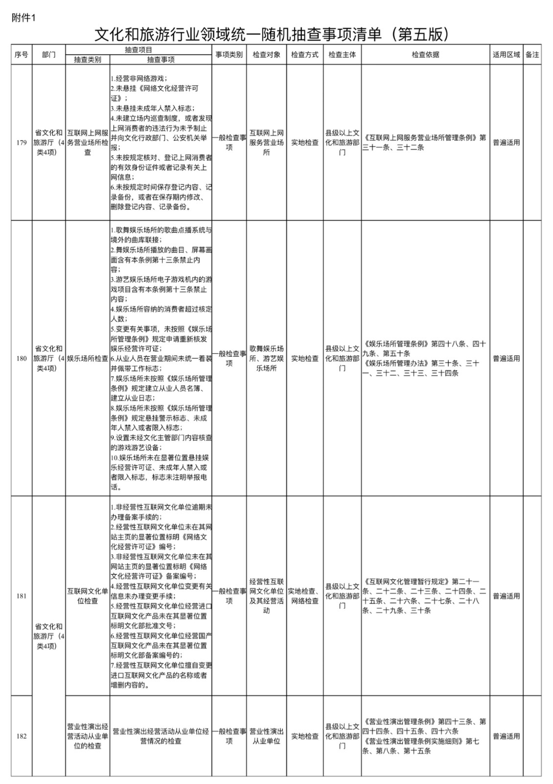 1)文化和旅游行业领域统一随机抽查事项清单 文化和旅游行业领域部门联合随机抽查事项清单