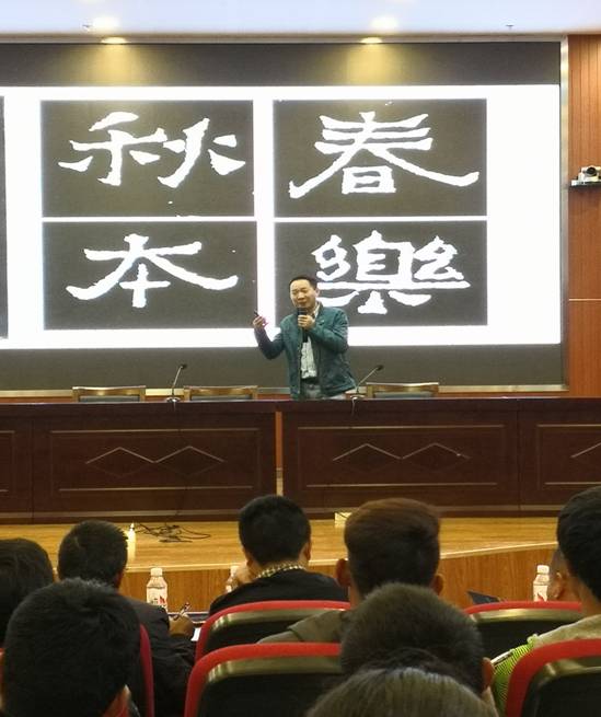 下午两点,刘老师又开始了别有情趣的讲座。讲座分两项内容进行。首先是书法教学模式与技法的讲解。刘老师采用小视频的形式演示了教学模式与书写技法,并针对视频,为大家精心解说,指出正路,消除误区,让老师们大开眼界。接下来的内容更接地气。刘老师采用了现场答疑的方式,请老师们针对自己教学过程中存在的问题与困惑进行提问。老师们争先恐后,刘老师仔细解答,刘老师还专门为提问老师送上了小小的礼物,气氛异常活跃。韶光易逝,直到讲座结束时,老师们仍觉得意犹未尽。