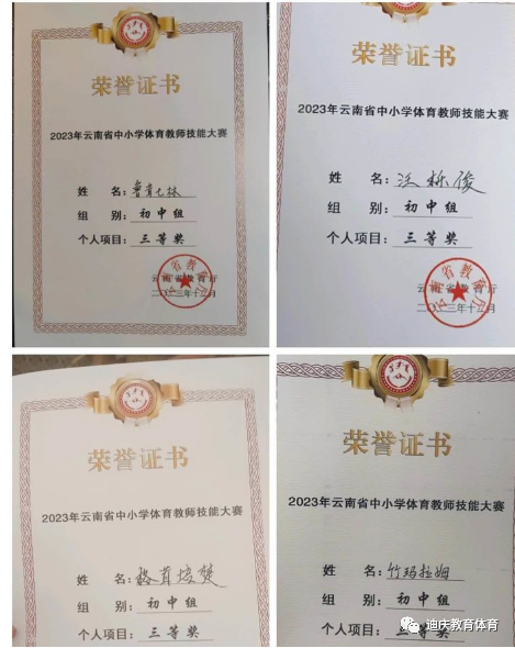 通过队员的不懈努力,在初中团体赛项目中“队列队形”获得了第五名、“民族健身操”获得了第七名的好成绩,荣获了“团体初中组三等奖”。在个人项目比赛中,参赛的彭太明老师获得了一等奖,和江韬老师获得了二等奖,汪栎俊、竹玛拉姆、格茸培楚、鲁茸七林四位老师获得了三等奖,荣获了“团体总分三等奖”。