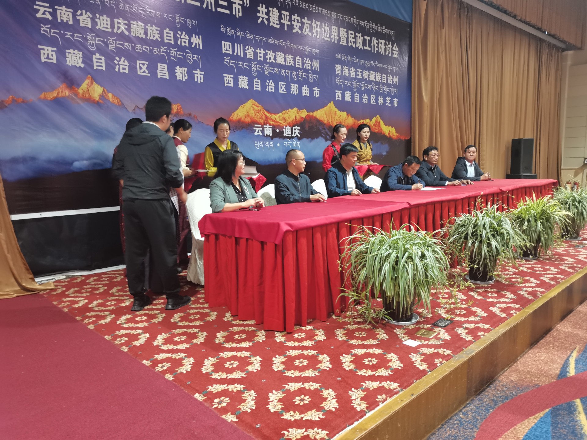 2021年7月21日,第九届“四省(区)三州三市平安边界创建暨民政工作研讨会”在香格里拉市天界神川大酒店召开。此次会议邀请了西藏昌都市、林芝市、那曲市;四川甘孜州;青海玉树州政府分管领导、民政局局长和民政局区划地名工作负责人;和芒康县、左贡县、察隅县、巴塘县、得荣县等毗邻县政府分管领导、民政局局长和民政局区划地名工作负责人前来参会,还特邀云南省民政厅相关领导和云南省丽江市、云南省怒江州政府分管领导、民政局局长和民政局区划地名工作负责人,以及玉龙县、兰坪县、贡山县、福贡县政府分管领导、民政局局长和民政局区划地名工作负责人前来参会。