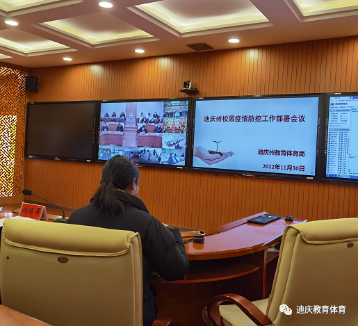 11月30日11时,全州校园疫情防控工作部署会议在州青少年活动中心召开,州人民政府副州长余桂芬参加会议。会议分析研判了目前全州教育系统疫情防控总体形势,听取了三县市和州直学校工作开展情况,对校园疫情防控进行再安排、再部署、再落实。会议以视频形式开至三县市、全州各所学校。