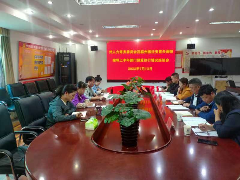 7月13日,迪庆州人大常务委员会一行到州搬迁安置办公室调研指导2022年上半年部门预算执行情况并召开座谈会。