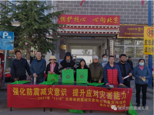 为进一步提高公众的防震减灾意识,普及防震避震常识,努力为人民群众做好服务。迪庆州始终把防震减灾宣传活动作为学党史“我为群众办实事”的具体实践,2021年11月5日-11月11日围绕主题“强化防震减灾意识,提升应对灾害能力”开展各种宣传活动。