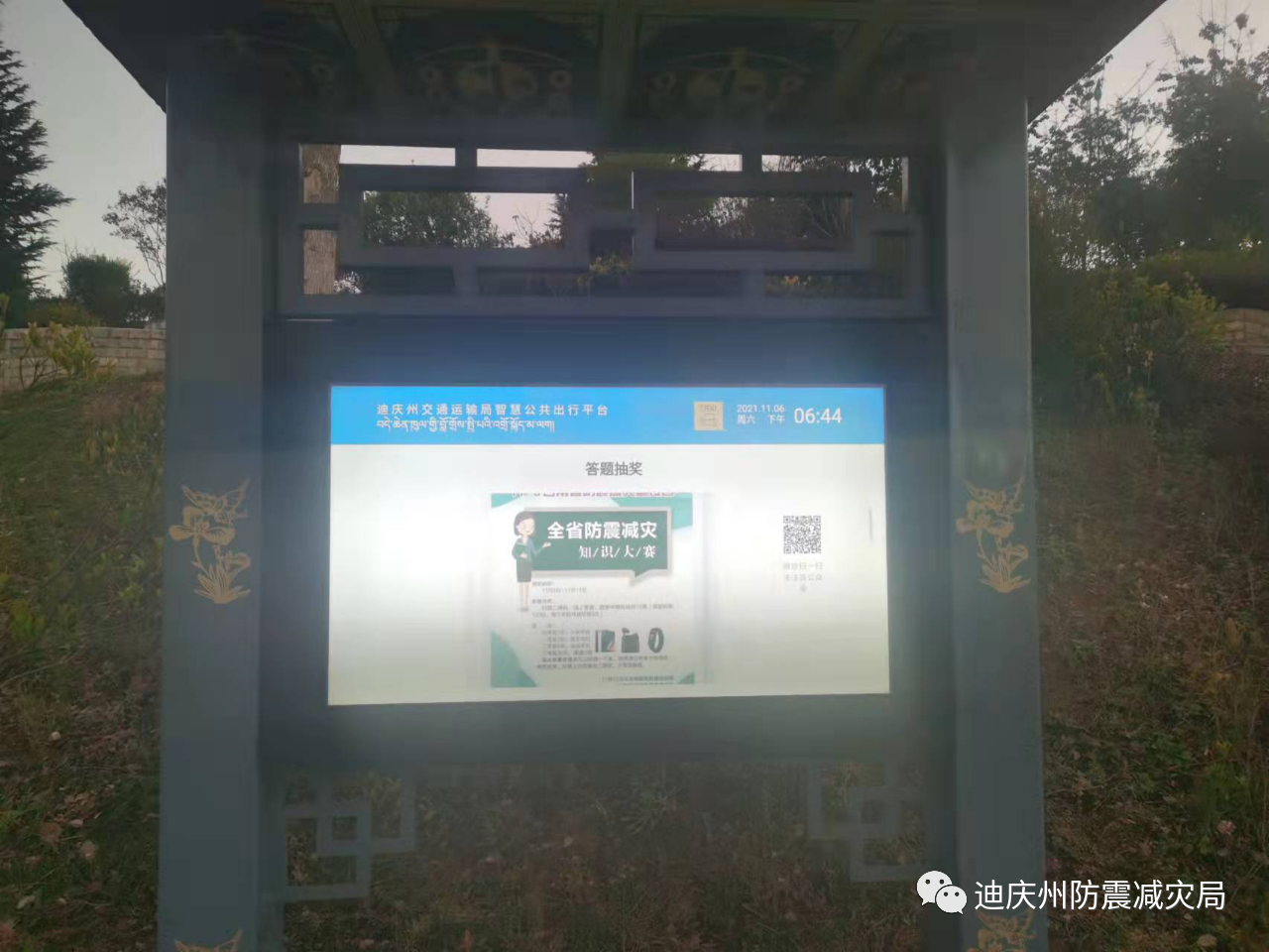 扩大宣传途经进行宣传。通过微信公众号等平台转发“全省防震减灾科普知识大赛”活动信息、发布地震科普知识。利用对外LED大屏、交通智慧出行平台滚动播放防震减灾科普宣传片,进一步扩大宣传面。