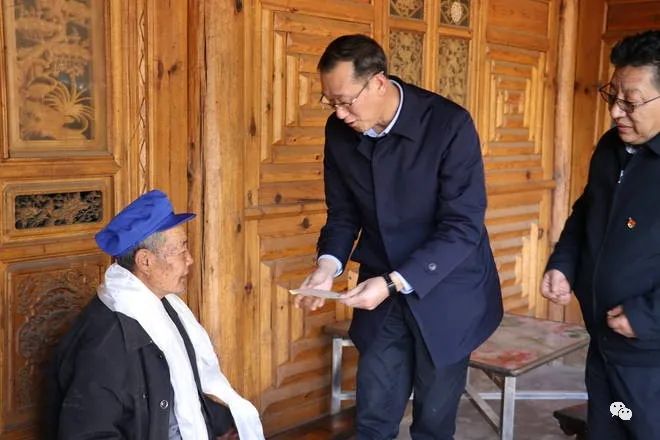带着浓浓的关切之情,苗有发一行先后来到开发区新仁村和礼仁村困难老党员家中,详细询问了老党员的身体状况及生活情况,为他们送上了慰问金,并祝他们身体健康,新年快乐。苗有发指出,广大老党员曾经为党的事业和迪庆发展作出了积极贡献,关心照顾好老党员,尤其是生活困难党员的晚年生活,是各级党委政府义不容辞的责任,要时刻把老党员、困难党员的冷暖挂在心上,在政治上多关心、在思想上多沟通、在生活上多照顾,积极主动为他们排忧解难,在全社会形成尊重、关心和爱护困难党员的浓厚氛围;要带着感情、带着责任,真心实意进行帮扶,让他们老有所养、老有所乐,安享晚年。