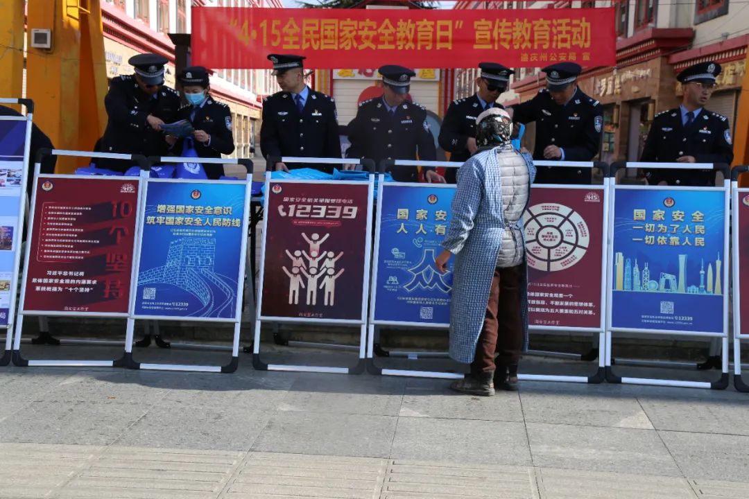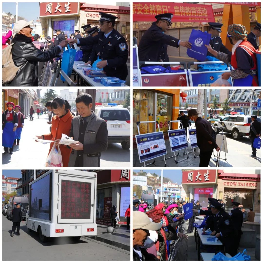 为推动国家安全教育宣传工作深入开展,切实增强我州各族人民国家安全意识,2023年4月14日,迪庆州公安局国保支队联合州局警令部、网安、反恐、治安、法制、食药环等部门和香格里拉市公安局联动普法。