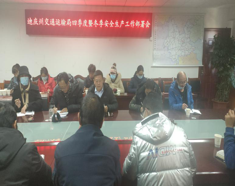 为深入贯彻落实习近平总书记对安全生产工作的重要论述和近期国家、省、州关于对安全生产工作的一系列指示批示精神,分析研判全州交通运输行业1-3季度安全生产形势,全力推进安全生产专项整治“集中攻坚年”及全州安全生产冬季专项行动,2021年12月9日,参加厅安委会四季度安全生产部署视频会议后,我局组织召开四季度暨冬季安全生产工作部署会议,会议由州交通运输局党组成员、副局长、局安委会常务副主任唐仕鹏主持,迪庆公路局、迪庆路政支队、局安委会各成员单位及交通运输重点企业负责人参加了会议。