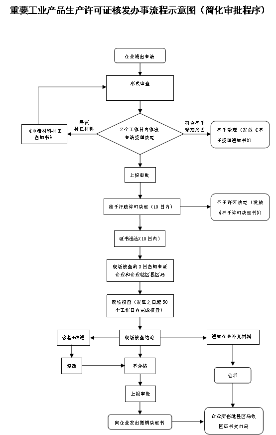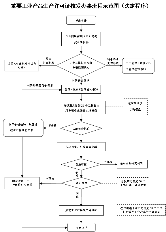 注1:所有材料通过电子审批系统申报,不提交书面材料; 注2:获证企业在申请延续时(需证书届满前30天以上,1年以内申请),符合《工业产品生产许可证实施细则通则》规定的免实地核查条件的,可免于实地核查(危险化学品不免实地核查)。 | ||||||||||