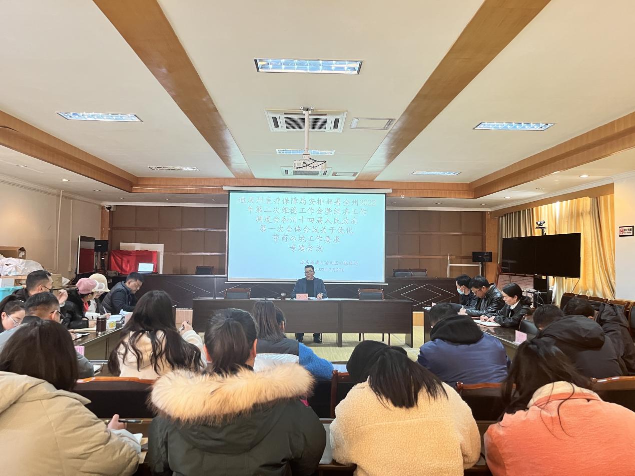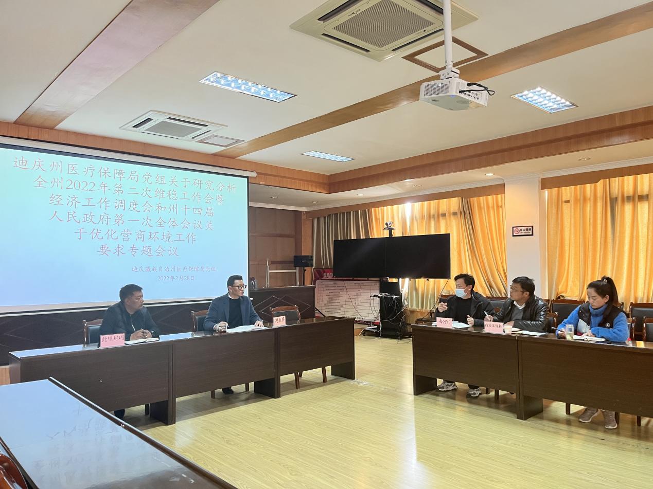 为进一步强化人人有责人人尽责的思想意识,深入贯彻落实习近平总书记关于优化营商环境的重要论述,进一步加大优化营商环境工作力度,贯彻落实近期州委、州政府关于优化营商环境的有关会议精神,迪庆州医疗保障局于2022年2月28日上午9时组织召开了中共迪庆州医疗保障局党组2022年第二次党组会议,就全州2022年第二次维稳工作会暨经济工作调度会和州十四届人民政府第一次全体会议关于优化营商环境工作相关问题进行研究分析,并在上午11时召开了全局干部职工大会,对优化营商环境有关工作进行了专题安排部署。