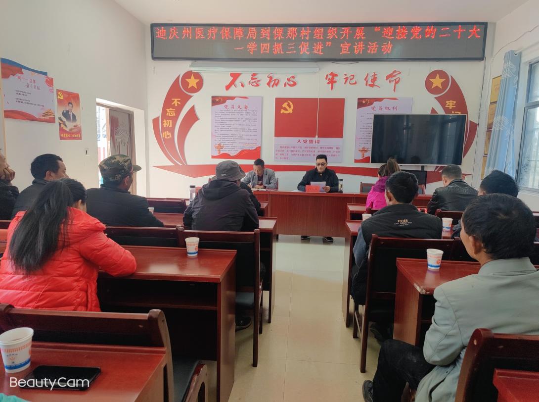 2022年3月11日,迪庆州医疗保障局根据关于“迎接党的二十大 一学四抓三促进”专项活动工作安排,由迪庆州医疗保障局党组成员、副局长冯玉兵同志带队到乡村振兴挂联点倮那村开展“迎接党的二十大 一学四抓三促进”宣讲活动。