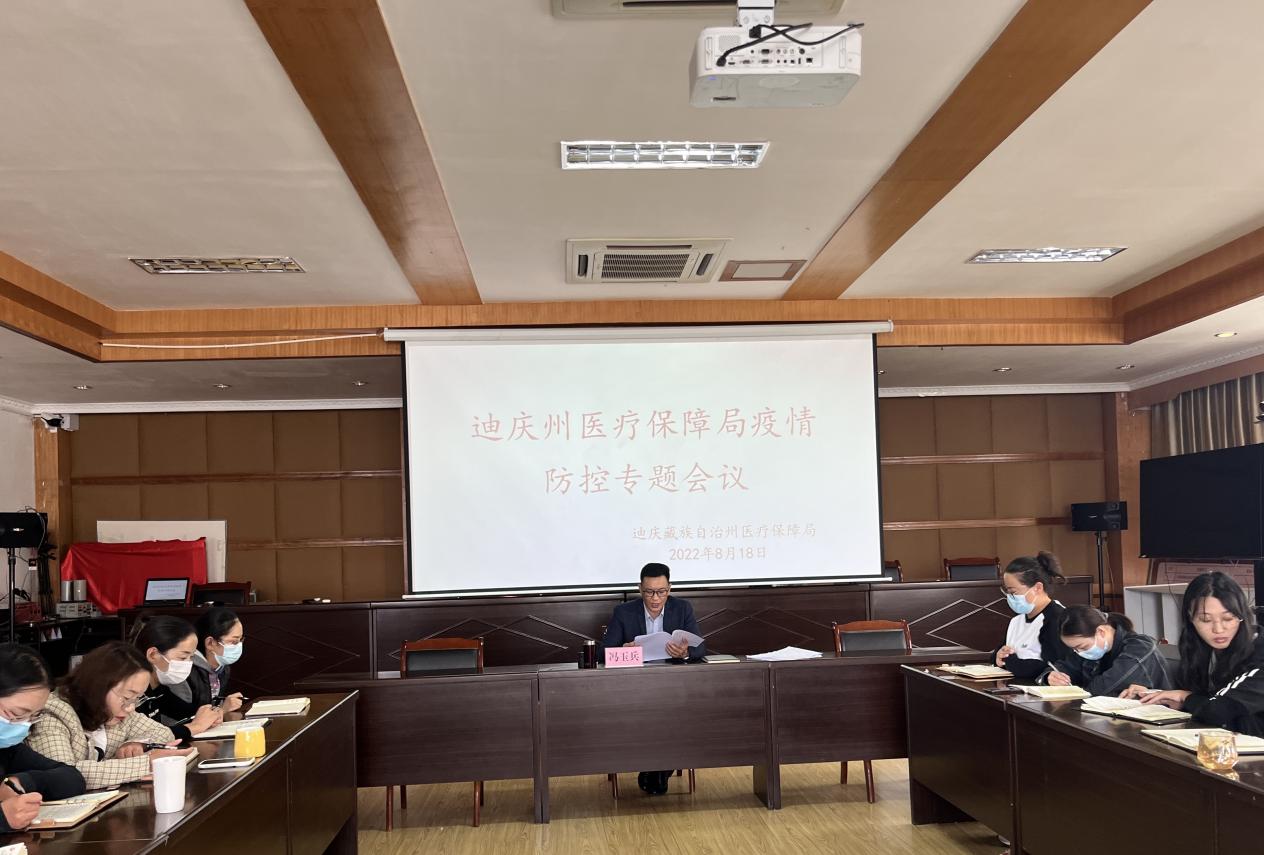 2022年8月18日上午10:00时,迪庆州医疗保障局组织召开疫情防控专题会议,会议由党组书记、局长冯玉兵同志主持,全局干部职工参加了会议。