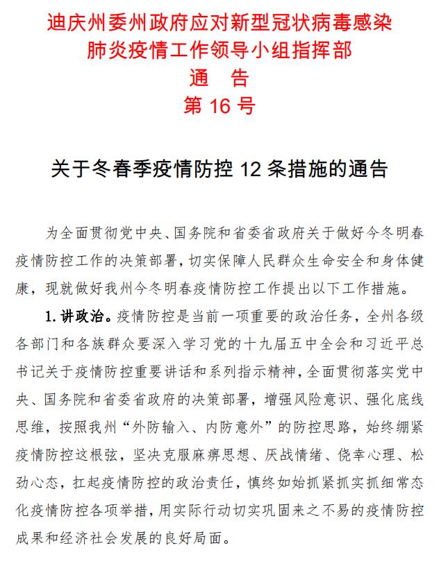【权威发布】迪庆州疫情防控指挥部发布第16号通告