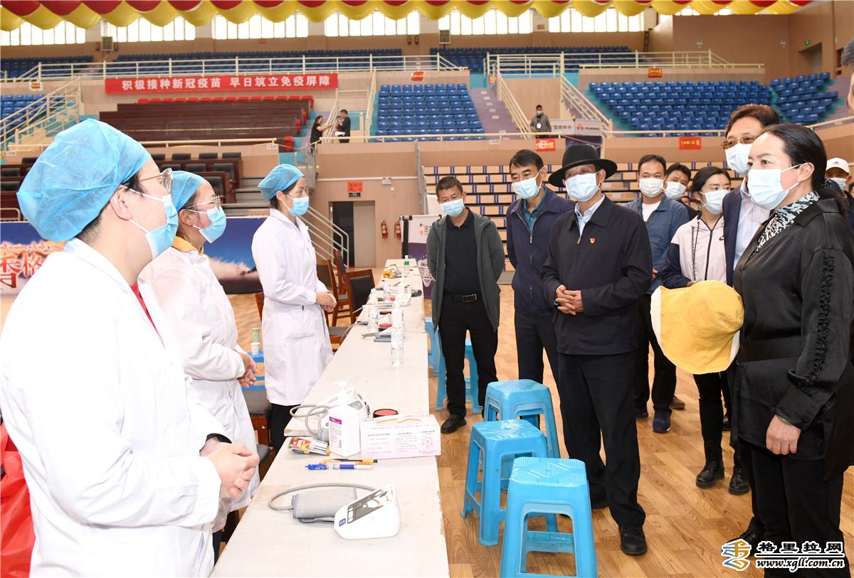 “大家辛苦了!”在香格里拉市城区新冠肺炎疫苗集中接种点州民族体育中心,王以志向广大医务工作者和一线工作人员致以敬意和问候。他说,自从新冠肺炎疫情发生以来,广大医务工作者和相关工作人员,始终坚守疫情防控工作一线,爱岗敬业、勇于牺牲奉献,为坚决维护全州广大人民群众的身体健康和生命安全,保持我州“零疑似病例” “零确诊病例” “零无症状感染者”的疫情防控成效作出了积极贡献。他希望大家一如既往地做好各项工作。