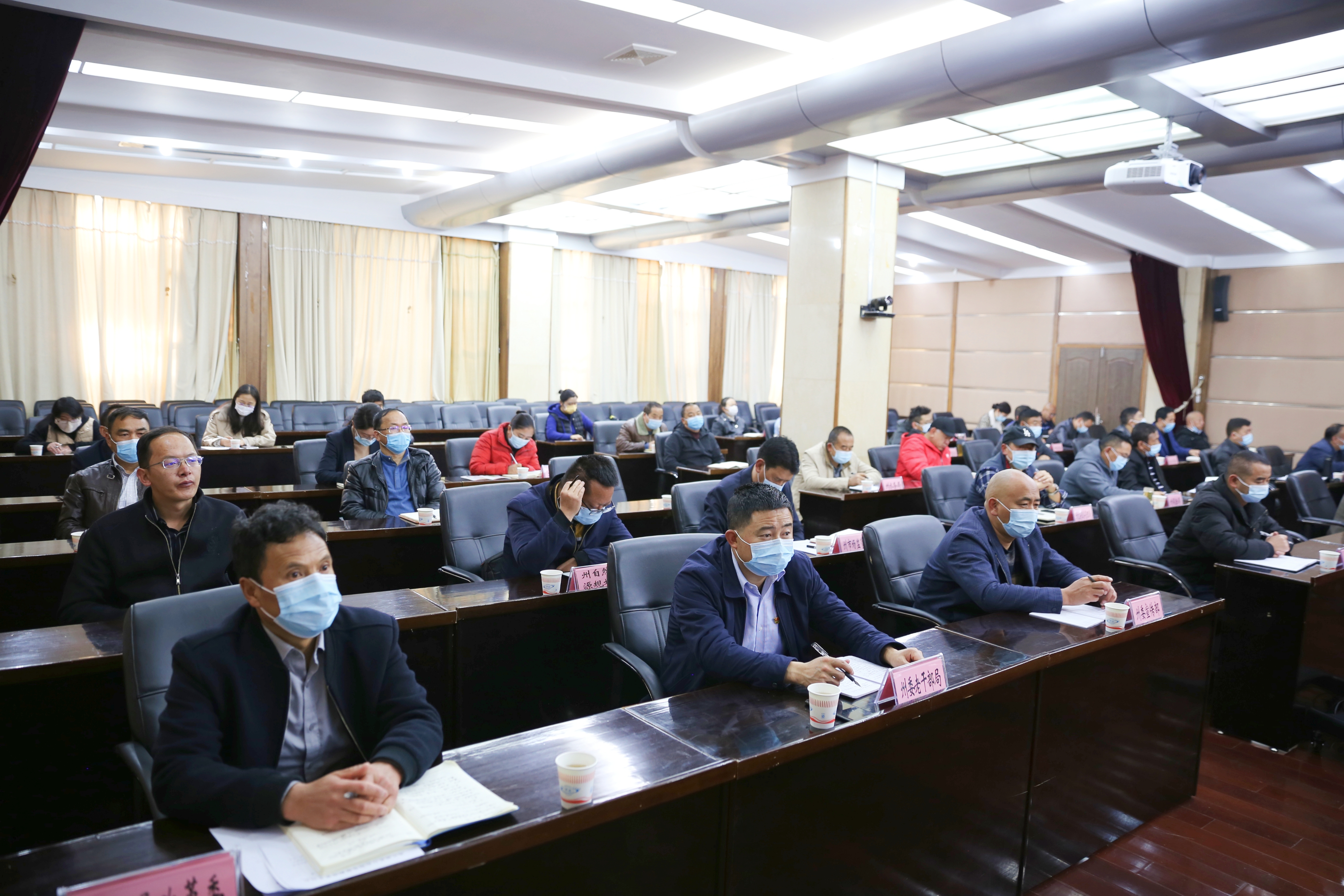 会议以视频形式开至各县市和乡镇。松永丽、李涛、杨继文等领导及州应对疫情工作领导小组指挥部各工作组、成员单位负责人在主会场参加会议。